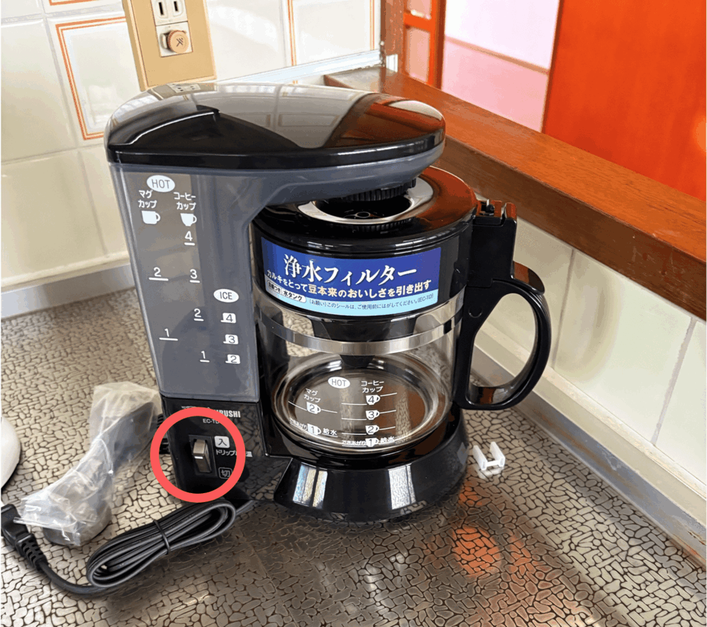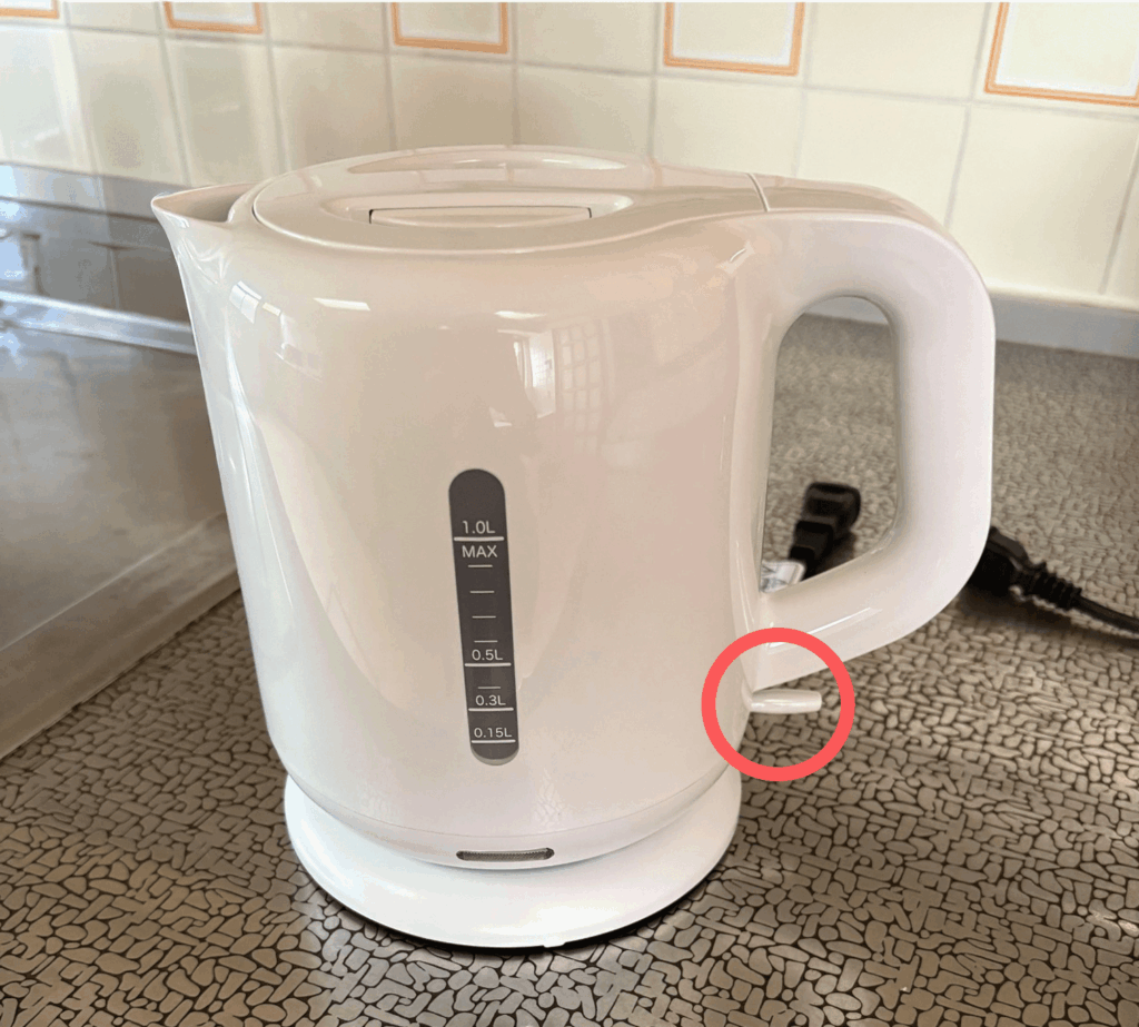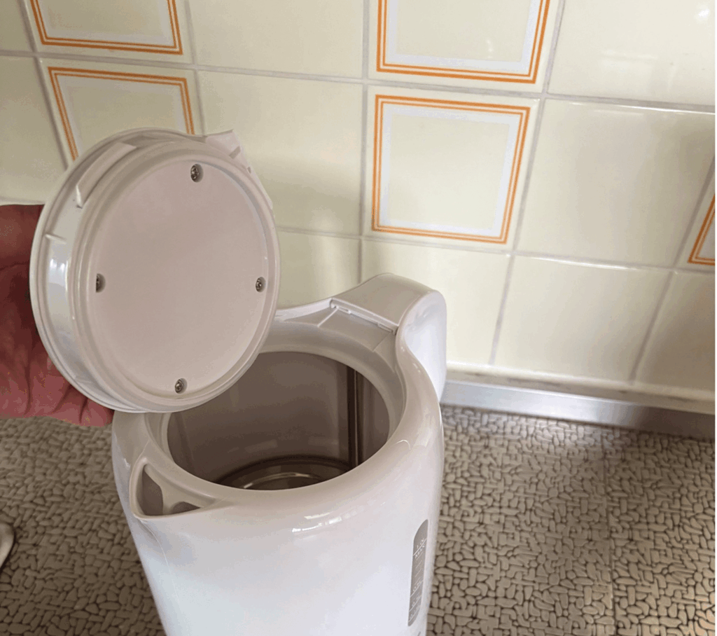 - ケトルのふたを開け、水を必要な量だけ入れる。