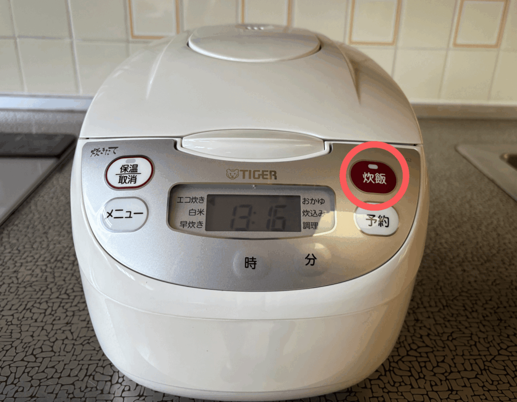 - 水でといだあと、目盛りに合わせて水を入れる。
