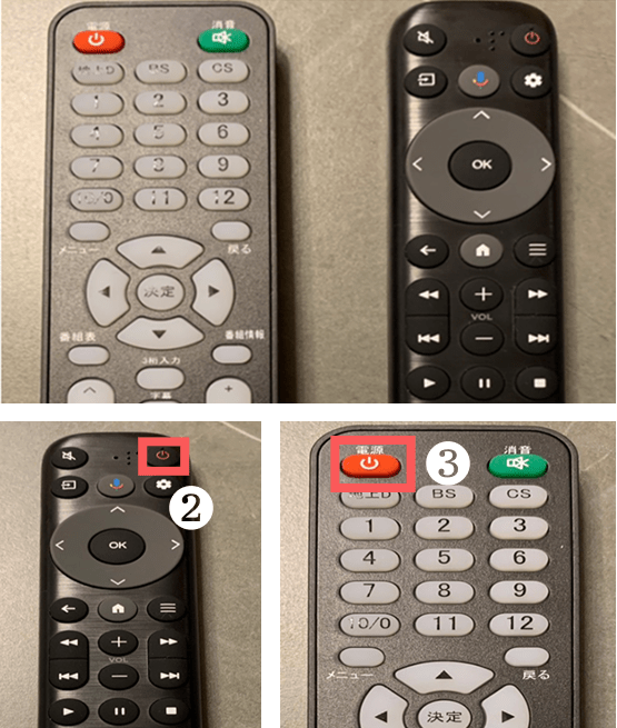 - テレビのリモコンは2つ(太いのと細いの)あります